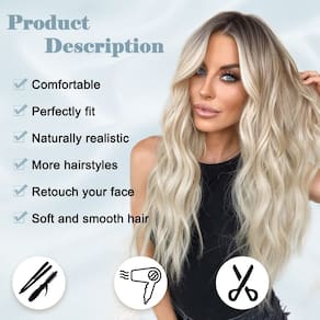 Cor: loiro platinado Material: fibra sintética: cerca de 26 polegadas (parte superior) Penteado: parte média da capa de cabeça ondulada para trabalho, encontros, todos os dias, Halloween, etc. As características da capa de cabeça ondulada de fibra moderada são naturais, macias, invisíveis, confortáveis, respiráveis e convenientes, super fácil de colocar e tirar, fácil de usar e cuidar. Ótima ideia de presente para amantes da moda elegante Torne-se mais confiante e atraente em festas de aniversário, datas, formaturas, casamentos e todos os eventos importantes. -?Material premium?: A peruca longa e ondulada é feita de fibra sintética resistente a altas temperaturas e resiste ao calor de até 160° c (320° f). A linha do cabelo é feita à mão, o que faz com que o cabelo pareça mais real. Fácil de pentear e não emaranhar facilmente e causar queda de cabelo. -?Estilo e benefícios?: esta peruca longa e ondulada é macia, cheia e grossa. As perucas de 26 polegadas de comprimento têm uma pequena área de couro cabeludo tricotada à mão. A nova tecnologia de linha de cabelo natural é mais realista. A peruca Long Wave é adequada para qualquer formato de rosto. Uma aparência natural ondulada e elegante ajuda você a mudar seu estilo e se tornar mais confiante e charmoso. -?Boné de peruca ajustável e respirável?: esta peruca longa e ondulada tem tamanho médio (21 polegadas -22,5 polegadas). Duas tiras elásticas na tampa, e você pode ajustar as tiras de acordo com sua cabeça. O boné de rede rosa respirável faz você se sentir confortável ao usá-lo. Fácil de instalar, fácil de tirar, economizando mais tempo. -?Econômica e amplamente utilizada?: a peruca de onda longa é perfeita para uso diário, trabalho, shows, festas temáticas, casamentos, encontros e assim por diante. Ela pode deixar você mais bonita e mais charmosa! Use o dedo ou uma escova de dentes largos para penteá-lo ao usá-lo pela primeira vez ou borrife um pouco de condicionador de cabelo diluído para torná-lo melhor. -?Dicas gentis?: Todas as perucas caem um pouco, especialmente quando você as usa pela primeira vez, o que é normal. As cores podem variar um pouco dependendo das configurações do monitor do seu computador pessoal ou celular. Fazemos o possível para representar com precisão as cores em todos os nossos produtos.