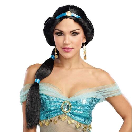 Dreamgirl Peruca feminina de jasmim árabe, acessório de fantasia de Halloween para adultos harém princesa, Preto