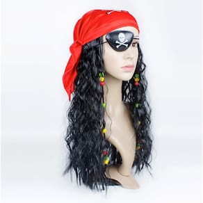 - Na compra receberá o kit com peruca com miçangas, tapa-olho e bandana.