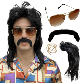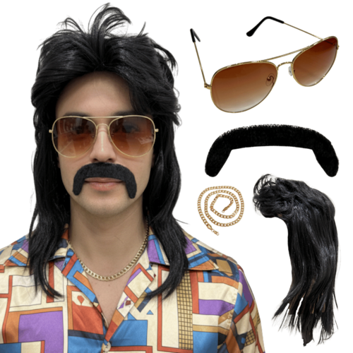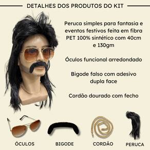 Peruca Retrô Anos 80 Rock Preto Com Bigode Óculos Cordão