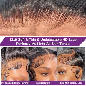 - ?Perucas de cabelo humano HD 33 x 15 cm com tela frontal misturam-se perfeitamente?: Renda transparente HD 13x6, macia e respirável, invisível, combina perfeitamente com sua pele, tamanho de renda grande pode ser parte lateral, parte média, rabo de cavalo alto e coque, estilizada como você gosta, perucas frontais de cabelo humano podem lhe dar mais opções de escolha
