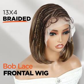 Perucas trançadas realçadas de 33 x 10 cm para mulheres negras, loiro misto misto sem cola, peruca de cabelo bob trançado frontal com corte de 30,5 cm, perucas bob retas sintéticas de 30,5 cm