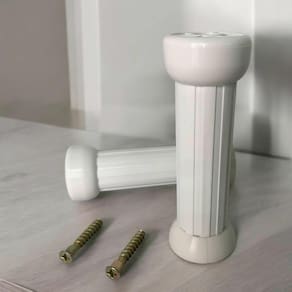 Pés Para Cozinha Branco 130 MM Com Duas Peças Esses pés são ideais para armários, gaveteiros ou outros itens de cozinha que precisam de elevação ou um suporte adicional; ajudam a proporcionar estabilidade e também podem facilitar a limpeza do espaço abaixo do móvel. Sua medida de 130 MM: Refere-se à altura dos pés, que é de 130 milímetros 13 cm , o que é uma altura comum para suportes de móveis de cozinha. Sua materia é o Prolipropileno que garante durabilidade e resistência ao impacto; O polipropileno é um plástico resistente e flexível, podendo suportar impactos sem quebrar facilmente. Tambem garante uma boa resistência ao desgaste, contribuindo para a segurança do produto a longo prazo. Se os pés forem bem projetados e instalados corretamente, com uma base ampla e fixação segura ao móvel, eles podem proporcionar uma boa estabilidade. Medidas Aproximadas do Produto: - Largura: 5cm; - Comprimento: 13cm; - Altura: 13cm; - Diametro: 5cm; - Material: Prolipopereno; - Peso: 45g; -material: Indart. Marca: Não Informado