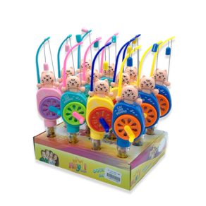 Mas a surpresa não acaba aí! O gato está firmemente ligado à parte superior de um tubo recheado com deliciosas balinhas sabor Tutti Frutti. Cada movimento de pesca pode ser recompensado com um doce, tornando a brincadeira ainda mais gostosa e motivadora. Com um display contendo 12 unidades, o Pesca Gato é o complemento perfeito para festas infantis ou como uma lembrancinha encantadora.