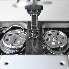 A Pespontadeira 2 agulhas barra fixa para tecidos pesados Bracob está equipada com 2 lançadeiras grandes (Jumbo) que operam com bobinas grandes e reduzem o tempo de parada para troca. Ideal para a confecção de jeans, bonés e jaquetas.