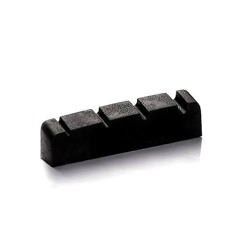Pestana (Nut) para Baixo 4 Cordas, fabricada em plástico preto, medidas 37.9X5.8X9.0/7.7, 10 unidades, Spirit Guitar Parts - NBG386-BLK.