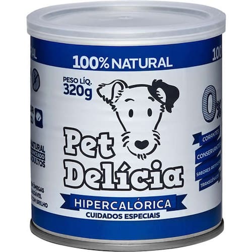 Ração Umida Natural Pet Delicia Lata Cães Receita Hipercalorica - 320 g- Umidade ideal; - 0% transgênicos; - Sódio controlado; - Alta digestibilidade; - Cheirosa e saborosa; - Rica em ômegas 3 e 6; - Baixo teor de carboidratos; - Antioxidantes e anti-inflamatórios naturais; - Rica em fibras, prebióticos e beta-glucanos; - Contem carboidratos de baixo índice glicêmico; - 0% conservantes, corantes, sabores artificiais, e subprodutos; - Alto teor calórico para promover recuperação do cão debilitado; - Cortes nobres de carne bovina (mono proteica) e legumes frescos; - Método de cozimento delicado para conservar os nutrientes naturais; - Alimentação natural (AN) balanceada para cães adultos em recuperação; Marca: Não Informado