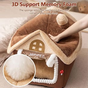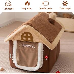 Especificação Material: Pelúcia Cor: marrom Peso: 230 g Tamanho do produto: 40 x 32 x 32 cm Lista de embalagem: 1 x Pet HouseWarm and Comfortable — Feito com materiais de pelúcia macios para manter os animais de estimação aconchegantes e seguros nas estações frias. Design fofo de desenho animado — O formato adorável da casa com chaminé e a placa “HIPIPET” adiciona charme a qualquer decoração de casa. Almofada removível — O travesseiro removível e lavável garante fácil limpeza e frescor duradouro. Estável e durável — A estrutura reforçada mantém a forma enquanto fornece um espaço seguro para gatos e cães pequenos. Perfeito para animais de estimação pequenos — Ideal para gatos ou cães pequenos com menos de 7,5 kg, oferecendo a eles um local de descanso privado e aconchegante.