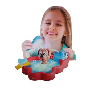 Com essa banheira que sai água de verdade, você pode dar banho no cachorrinho com a esponja e depois seca-lo na toalha. A ducha sai água de verdade