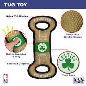 Brinquedo de campo Pets First NBA Boston Celtics. — Brinquedo resistente de nylon para animais de estimação com costura dupla e guincho interno, tamanho único, CEL-3030