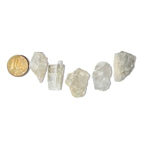 Observação: Por se tratar de um mineral natural, as peças apresentam variações de formato, tonalidade e textura. Podem conter áreas rústicas, fissuras naturais ou superfícies mais lisas, características típicas da Petalita em estado bruto. Marca: Não Informado