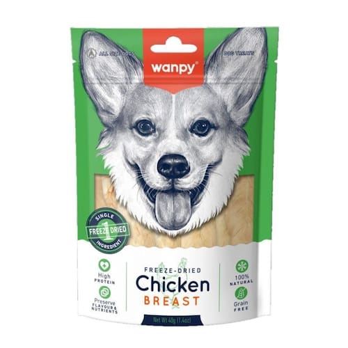 O petisco Freeze Dried Peito de Frango da Wanpy é uma combinação deliciosa e nutritiva para o seu AUmigo Liofilizado em baixa pressão a -32ºC, preserva o sabor puro e 96% dos nutrientes do peito de frango, garantindo alta qualidade nutricional. Composto exclusivamente por peito de frango 100%, e grain free livre de grãos e rico em proteínas magras, ideal para promover saúde e energia ao seu pet. Composição básica: Peito de frango 100%. Níveis de : Umidade máx. 80g/kg Proteína Bruta min. 800g/kg Fibra Bruta máx. 10g/kg Matéria Mineral máx. 80mg/kg Extrato Etéreo min. 20g/kg Cálcio min. 150mg/kg Cálcio máx. 3000mg/kg Fósforo min. 4000mg/kg Energia metabolizável: 388,6 kcal/100g modo de usar: 30kg = 1-1,5 pacotes por dia Marca: Não Informado Ean: 6927749812357