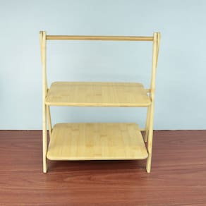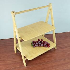 Petisqueira 2 Andares De Bambu Com Alça E Pés De Apoio 37,5Cm