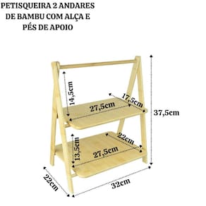 PETISQUEIRA 2 ANDARES DE BAMBU COM ALÇA E PÉS DE APOIO - CX152