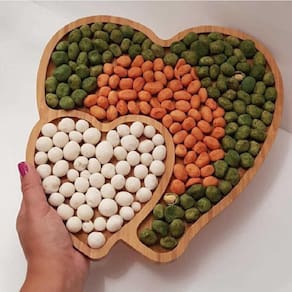 Com a Petisqueira De Bambu Coração Com 2 Divisórias Para Servir, você terá um item versátil e funcional para servir seus petiscos favoritos. Além disso, o bambu é um material que não absorve cheiro nem sabor, garantindo que seus alimentos sejam servidos com qualidade.