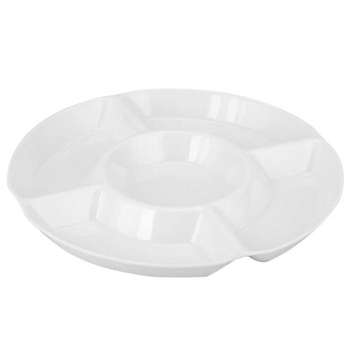 A Petisqueira com 5 Divisões 30 cm Melamina Uny Home é ideal para servir petiscos, salgados, frutas, doces e porções com molho ou acompanhamento na divisão do centro.Utensílio eficiente e resistente que não possui cantos difíceis de se alcançar, tornando a limpeza ágil, fácil e rápida.Além de atender aos mais exigentes conceitos de qualidade do mercado com o seu material composto por melamina, possuí um design moderno e prático em formato redondo com cinco divisórias para você complementar a sua mesa e encantar seus convidados com elegância.Código de Barras:7899670804727 Referência:CP170801 Marca:Uny HomeComposição/Material:Melamina Dimensões aproximadas do produto (cm):3x30x30 cmPeso aproximado do produto (kg):0.443 kg
