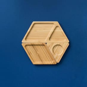 Com a Petisqueira de Bambu Hexagonal Desmontável da OIKOS você deixará seus petiscos sempre à mão.