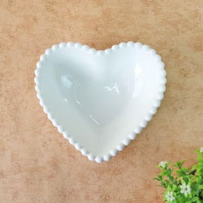 Petisqueira ideal para servir pequenas porções de doces e salgados, sua forma coração com detalhes nas laterais são um charme especial na peça, além de decorar é um prato lindo para servir e recepcionar muito bem seus amigos, familiares e até mesmo para um jantar romântico para duas pessoas. Agora ficou ainda mais fácil e mais prático você receber bem !