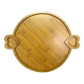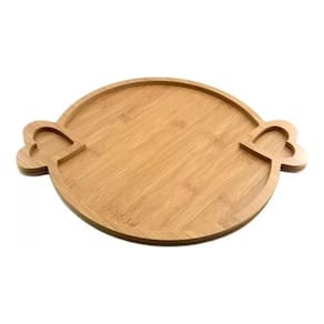 Especificações técnicas: - Material: Gamela de bambu, Petisqueira tábua de frios de madeira MDF - Cor: Marrom - Dimensões Gamela de bambu: Diâmetro 30 cm, altura 1.3 cm, largura 30 cm - Dimensões Petisqueira tábua de frios: 30 cm de comprimento, 30 cm de largura, 1 cm de altura - Design redondo com divisórias na gamela de bambu - Design quadrado com 4 divisórias na petisqueira tábua de frios
