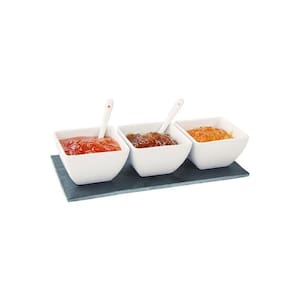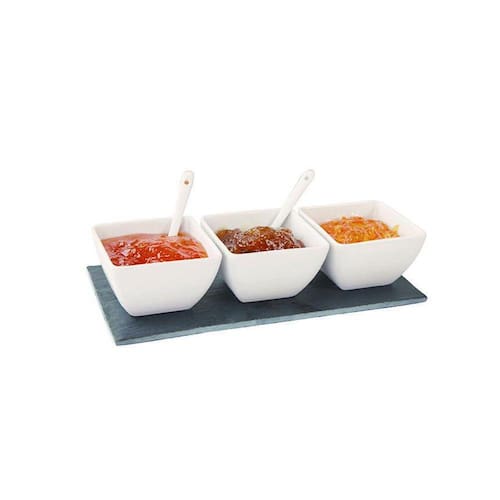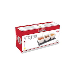 Petisqueira de Porcelana Ramequins, Colheres com Bandeja. Essas peças possuem charmosos detalhes que enriquecem ainda mais este belo conjunto. Para petiscos saborosos, nada melhor do que uma apresentação à altura. Agrade seus convidados também na apresentação visual à mesa. Um produto de porcelana de alta qualidade e surpreenda seus convidados. PETISQUEIRA PORCELANA 7 PEÇAS - Dimensões da Peça: Ramequins: 8 x 8 x 5cm Colheres: 9,8 x 2,3 x 1cm Bandeja: 25 x 12 x 0,8cm - Dimensões da Embalagem: 28 x 7 x 12,5cm - Material: Porcelana - Cor: Ramequins e colheres: Branco Bandeja: Grafite - Tipo de Embalagem: Caixa litografada - Marca: Haüskraft - Origem: Índia - Capacidade: 150ml cada ramequim - Espessura: 3mm - Contém 7 peças: 3 Ramequins; 3 Colheres; 1 Bandeja; - Cuidados: Lave com detergente neutro e enxágue com água limpa em abundância. Para secar, utilize um pano seco e macio. Evite o uso de produtos abrasivos. Lave antes de usar pela primeira vez. Não recomendável o uso em máquina de lavar. - Dicas de uso: Ideal para diversos tipos de patês, entradas, antepastos e petisco frios, como queijos, amendoins, conservas em geral e azeitonas, ou quentes, como mini pães de queijo e