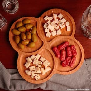 Petisqueira de Bambu Com 4 Divisórias Wave 22cm x 22cm 1,7cm - Imporiente. Petisqueira ideal para servir canapés, salgados, queijos e embutidos. É perfeita para ser utilizada em confraternizações e happy hour com os amigos e familiares.