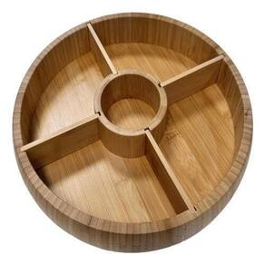 leve praticidade e elegância para suas reuniões e encontros com a Petisqueira Giratória em Bambu. Feita em bambu, este item é não apenas durável e ecológico, mas também traz um toque natural e sofisticado para a sua mesa.