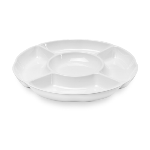 A travessa de 5 divisões Petiscos, da linha Buffet, é o que você precisa na hora de servir convidados. Na cor branca e com acabamento em brilho, a peça é versátil e combina com todo tipo de decoração. Suas divisórias ainda permitem que você ofereça um mix de petiscos de forma organizada e prática. Com Ø35,5x3,8 cm, a travessa é feita de melamina, sendo mais resistente a riscos e quedas. Pode ir da mesa à lava-louças!