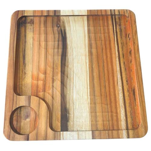 Garantia: 90 dias / Peso total: 312g / Cor predominante: madeira / Ref: 7794463784005 Dimensões: 23cm (C) x 23cm (L) x 1,5cm (A); Conteúdo: 1 petisqueira; Material: madeira teca; Cuidados: - Antes do primeiro uso, lave e enxágue bem, quando estiver seco, esfregue um pouco de óleo de cozinha na superfície, retirando bem o excesso; - Após cada uso, lave normalmente com esponja macia, sabão e detergente. Seque com toalha de pano; - Guarde em locais arejados, evite ambientes abafados como gavetas e armários; - Não lave o produto em lava louça, nem utilize esponja de aço. Não deixe submerso em água. Não secar ao sol, nem deixe secar em pé na pia; - Não empilhe as peças quando estiverem úmidas; - Não leve o produto ao forno ou geladeira.