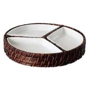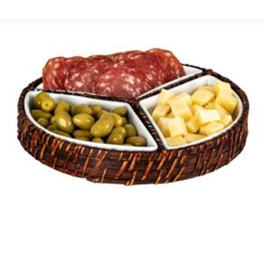Petisqueira Redonda em Rattan com 3 compartimentos em Porcelana - 25 x 4cm.