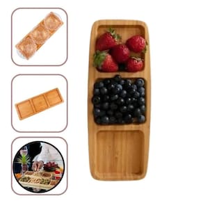 Com três divisórias, é ideal para organizar diferentes tipos de petiscos como castanhas, frios, queijos, azeitonas, molhos e muito mais. Seu design retangular otimiza o espaço e se adapta facilmente a diferentes estilos de decoração.