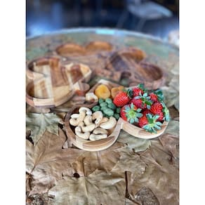 Petisqueira teca trevo e corações 4 divisórias desmontável Cód 24 petisqueira trevo encaixe teca med: 30x30x2cm compr x larg x altu cód de barras: 0618341537545