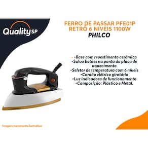 FERRO RETRO BASE CERÂMICA 1100W 6 NÍVEIS PFE01P 127V OU 220V PHILCO