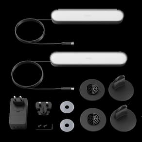Philips Hue Play - Kit Completo com 2 Barras de iluminação InteligenteConecte-o ao Hue Hub (vendido separadamente) para controlar as luzes com seu Hue App, Voice ou dispositivo Smart Home. Design compacto, experiência de luz total. Crie um ambiente vibrante com as barras de luz Hue Play. Escolha entre 16 milhões de cores para experimentar diferentes efeitos de luz. Coloque-o no chão, deixe-o sobre o gabinete ou monte-o na parte de trás da TV e pinte sua parede com luz. Sincronize suas luzes com música ou filmes usando o aplicativo Hue Sync. Este kit básico fornece 2 pontos de luz, 1 fonte de alimentação, 2 suportes de mesa e 2 suportes de montagem de TV. Requer o Hue Hub (vendido separadamente) para a experiência completa do Hue e para aproveitar as vantagens da ativação por voz.Possível conectar 1 extensãoTodos os produtos HUE possuem 2 anos de garantia