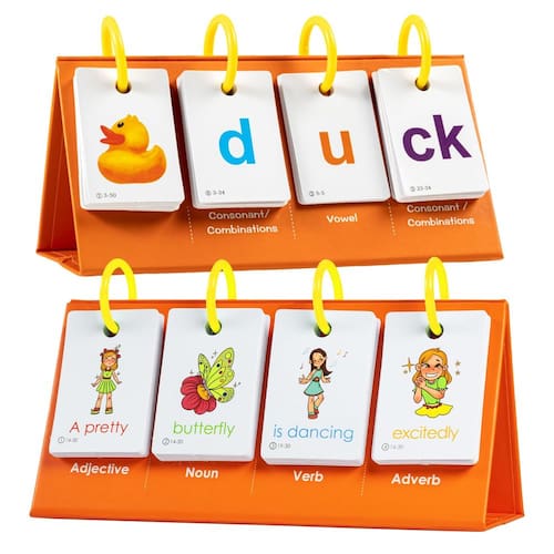 Veja as imagens e construa palavras diferentes. As crianças podem virar os cartões flash e criar letras corretas para combinar com as imagens. O kit de cartões flash Phonics contém 80 cartões de dupla face e 50 imagens divertidas para construir palavras CVC, CVCC e CCVC. Os jogos de palavras CVC podem melhorar o conhecimento das crianças sobre vogais e consoantes, ajudando-as a se familiarizarem com palavras cvc e fonética primária. O construtor de palavras Cvc é uma boa ferramenta de avaliação e jogo de prática de lição de casa. - Construa jogos de palavras CVC CVCC CCVC: veja as imagens e construa palavras diferentes. As crianças podem virar os cartões flash e criar letras corretas para combinar com as imagens. O kit de cartões flash Phonics contém 80 cartões de dupla face e 50 imagens divertidas para construir palavras CVC, CVCC e CCVC. Os jogos de palavras CVC podem melhorar o conhecimento das crianças sobre vogais e consoantes, ajudando-as a se familiarizarem com palavras cvc e fonética primária. O construtor de palavras CVC é uma boa ferramenta de avaliação e jogo de prática de lição de casa - Construção de frases envolventes para alunos iniciantes: vire cartas coloridas para construir frases divertidas e envolventes que despertam a imaginação. Cada cartão grande apresenta imagens vibrantes que se conectam, trazendo frases à vida e promovendo habilidades de alfabetização. Ideal para melhorar a fluência de leitura, dominar a estrutura das frases e promover o desenvolvimento da fala e da linguagem. Perfeito para crianças que lutam com a leitura e escrita de frases - Aprendizagem em casa e em sala de aula: os cartões flash Phonics são brinquedos educativos precoces que ajudam as crianças a aprender e resolver problemas e aumentam sua autoconfiança. ideal para ambientes domésticos e escolares. Projetado por educadores especializados, este brinquedo atende às diversas necessidades dos estudantes, aprimorando suas habilidades de comunicação, interações sociais, desenvolvimento emocional e habilidades comportamentais - Suprimentos duráveis: Este é um cartão flash fônico feito de material durável e bom. As imagens em jogos de cartas fonéticas são coloridas e vivas para atrair a atenção das crianças. Os cartões didáticos também podem ser facilmente removidos do anel, adequados para uma variedade de estilos de aprendizagem. É fácil de dobrar, muito conveniente para meninos e meninas carregarem na mochila escolar - Materiais de aprendizagem: nosso conjunto de fonética pré-escolar, o recurso ideal do professor para materiais educativos, brinquedos de ensino doméstico, jogos de jardim de infância, atividades pré-escolares, ferramentas de terapia da fala e auxiliares de creche. Para qualquer dúvida, e espere uma resposta rápida dentro de 12 horas