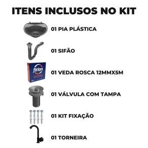 Pia lavatorio banheiro plástico 4,0l cinza A pia plástica para banheiro é uma opção prática e funcional para instalação em ambientes com espaços reduzidos. Com dimensões compactas e design simples, é fabricada em polipropileno de alta qualidade, o que garante sua resistência e durabilidade. Com capacidade de armazenamento de 4,0 litros, essa pia é indicada para uso em banheiros e lavabos, sendo uma solução ideal para quem busca uma alternativa econômica e de fácil instalação. Além disso, sua superfície lisa facilita a limpeza e manutenção, permitindo que ela se mantenha higiênica e livre de germes e bactérias. Especificações técnicas Material: polipropileno Dimensões: 35,5 x 28 x 15,8cm Possui porta sabonete: sim Possui furo para torneira: não Capacidade: 4,0l Locais sugeridos: banheiros e lavabos Acabamento: brilhante Cor: cinza Formato: oval Sifão sanfonado universal 61cm cinza O sifão sanfonado universal é um acessório essencial de encanamento, projetado para se adaptar a qualquer saída de válvula de pia e a qualquer tubulação de esgoto, independentemente de seu tamanho ou tipo. Além disso, o sifão sanfonado universal corrige possíveis desalinhamentos entre a cuba e a tubulação de despejo, evitando assim a Formação de bloqueios e obstruções que possam causar vazamentos ou refluxo de água suja. Esse acessório é ideal para tanques, pias e cubas em banheiros, cozinhas e lavanderias Ele também é resistente a altas temperaturas, suportando água fria e quente até 90c, o que o torna adequado para ser em qualquer tipo de ambiente. Este sifão é compatível com tubos e conexões de 38, 40, 48 e 50mm, garantindo uma instalação fácil e segura, sem necessidade de ferramentas especiais. Ele é feito de plástico abs de alta Qualidade, o que o torna resistente a rachaduras, corrosão e vazamentos, garantindo sua durabilidade ao longo do tempo. Em resumo, o sifão sanfonado universal é uma solução confiável e prática para quem procura um acessório de encanamento que seja fácil de instalar e que possa se adaptar a diversas situações de encanamento. Sua capacidade de corrigir desalinhamentos e impedir o retorno de mau cheiro da tubulação de esgoto torna-o uma escolha inteligente e eficaz para garantir a segurança e higiene em sua casa ou negócio. Especificações técnicas Material: polipropileno Entrada para válvula polegada : 7/8 Saída para tubos e conexões: 38, 40, 48 e 50mm Modelo: para pias, cubas, tanques, lavatórios e válvula americana Suporta temperatura até: 90 graus Cor: cinza Acabamento: brilhante do fabricante: 90 dias Manual de instalação: sim Torneira para lavatório plástica preto A torneira para lavatório possui o volante anatômico, que facilita a abertura e o fechamento, o plástico abs com proteção uv. Especificações técnicas Composição: plástico de engenharia abs , polipropileno pp e elastômeros Utilização: água fria Fabricação: nacional O produto segue montado e pronto para instalação Itens inclusos 01 pia plástica 01 válvula com tampa 04 buchas s6 04 parafusos 3,5 x 30mm 01 sifão 01 adaptador universal 01 rolo de fita veda rosca 12mm x 5m 01 torneira plástica