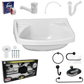 Pia Banheiro 4,8L + Kit Banheiro + Torneira + Engate + Sifão
