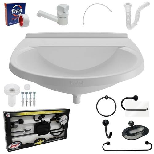 Pia Banheiro 8L + Kit Banheiro + Torneira + Engate + Sifão