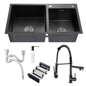 Kit Cuba Dupla Pia Cozinha Gourmet Preta E Torneira 2 Saídas