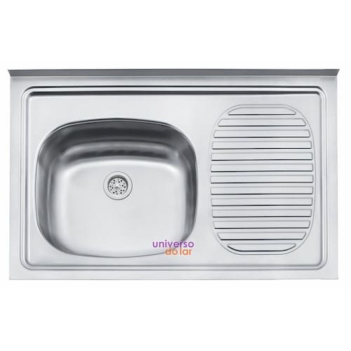 Pia de Apoio Tramontina Filo FX EX em Aço Inox 80x50 cm Se você preza por aproveitar os espaços da melhor forma possível, sobretudo na cozinha, você precisa da Pia de Apoio Tramontina Filo FX EX em Aço Inox 80x50 cm. Uma pia compacta com cuba de 13 centímetros no lado esquerdo e escorredor de louça, é produzida em aço inox com acabamento pré-polido, o que a torna um item altamente resistente, durável e muito fácil de limpar. De fácil instalação, ela acompanha válvula de 3 1/2'' (polegadas) de diâmetro e possui furo opcional para torneira. Uma pia prático, que vai mudar seu jeito de ver a cozinha! Informações Gerais Pia com 1 cuba a esquerda + escorredor.Aço Inox AISI 430.0,6 mm de espessura.Acabamento pré-polido.Furo opcional para torneira.Acompanha válvula de Ø 3 1/2"