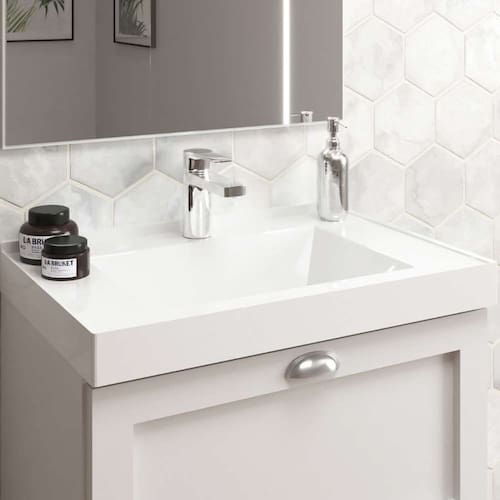 Pia de Banheiro Embutir 80cm Branco Milano - On Móveis Única e elegante, a pia de marmorite contém as medidas de 60cm de largura, 40cm de profundidade e 12cm de altura, cumpre seu papel de oferecer beleza e facilidade na limpeza. Diferente das outras, a pia para banheiro de marmorite deixa qualquer ambiente com mais personalidade. A On Móveis oferece garantia de 1 ano a seu novo lavório, para que você possa ter a tranquilidade de saber que o seu móvel está protegido.