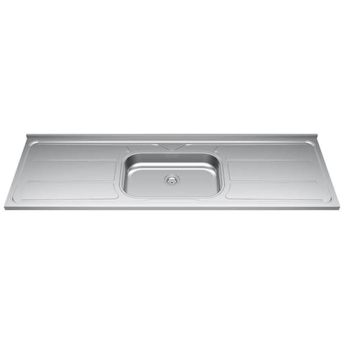 Ela é produzida em aço inox que conta com muitos benefícios, entre eles: é resistente a impactos, choques térmicos, corrosão, seu material não absorve odores e a manutenção é muito fácil! Conta com cuba central, escorredor duplo e forro em concreto garantindo qualidade e durabilidade ao produto.