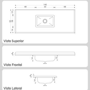 Dimensões do Produto: Altura: 22cm | Largura: 140cm | Profundidade: 55cm Válvula indicada (não inclusa): Americana, bitola de 3 polegadas, diâmetro aprox. de 8,9cm do topo e 4,5cm do pescoço. *Você pode consultar as medidas detalhadas na imagem técnica do produto.