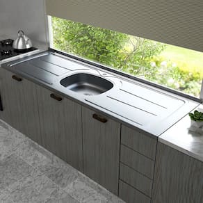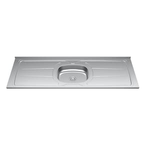 Características: Produzido em aço inox e concreto aerado Canais inclinados. Superfície plana. Furo para fixação da torneira Cuba inclusa