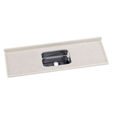 Especificações Modelo: GRANITADO C/CUB Espessura: Frontão 8cm (altura) e Bordas 3cm (altura) Acabamento: Cobertura Granitada de Gel coat com brilho Profundidade da cuba inox de 14cm Produto não acompanha válvula