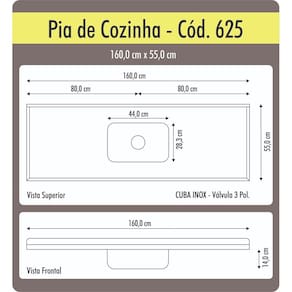 Dimensões do Produto: Altura: 15 cm Largura: 160 cm Profundidade: 55 cm Peso: 23 Kg