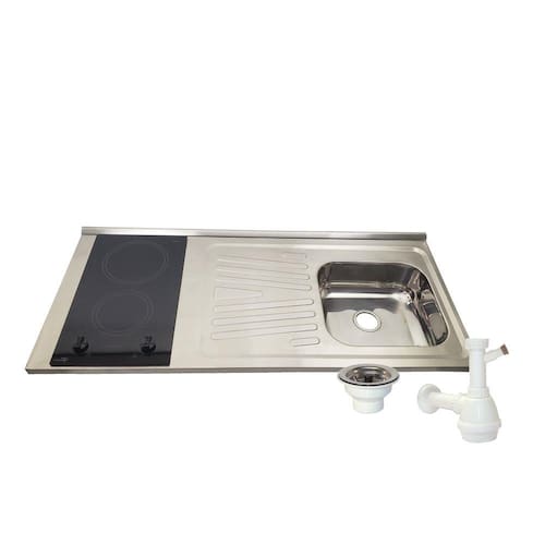 Pia Fogão Elétrico 2 bocas Fabrinox 120x55cm, cuba direita, válvula e sifão