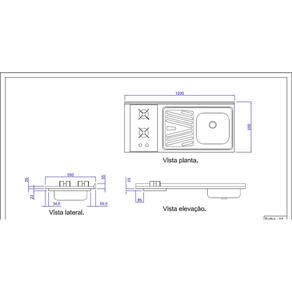 Sobre a pia: Pia de cozinha de aço inox, para gabinete, medindo 120x55Cm, cuba direita TIPO DE AÇO: AISI304 (NÃO-FERRÍTICO) INSTALAÇÃO: SOPREPOR GABINETE / MÃO-FRANCESA/MURETAS DE ALVENARIA MEDIDAS: 1200x550mm CUBA: SIMPLES 360x340x140mm ACABAMENTO: TAMPO ESCOVADO / CUBA BRILHANTE PREENCHIMENTO: CONCRETADO VALVULA: 3 ½ NÃO INCLUSA ANTI-RUÍDO: NÃO INCLUSO GARANTIA: 1 ANO