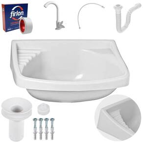 Pia lavatório banheiro 4,8l + torneira branca + sifão universal branco + engate flexível + fita veda rosca