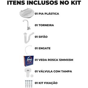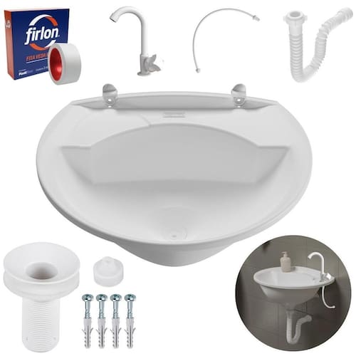 Pia lavatório banheiro 4l + torneira branca + sifão universal sanfonado + engate flexível + fita veda rosca