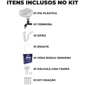 Pia lavatório banheiro plástico 4l branca astra A pia plástica para banheiro da marca astra é uma opção prática e funcional para instalação em ambientes com espaços reduzidos. Com dimensões compactas e design simples, é fabricada em polipropileno de alta qualidade, o que garante sua resistência e durabilidade. Com capacidade de armazenamento de 4 litros, essa pia é indicada para uso em banheiros e lavabos, sendo uma solução ideal para quem busca uma alternativa econômica e de fácil instalação. Além disso, sua superfície lisa facilita a limpeza e manutenção, permitindo que ela se mantenha higiênica e livre de germes e bactérias. Especificações técnicas Material: polipropileno Dimensões: 35,5 x 28 x 15,8cm Possui porta sabonete: sim Possui furo para torneira: não Capacidade: 4,0l Locais sugeridos: banheiros e lavabos Acabamento: brilhante Marca: astra Cor: branca Formato: oval do fabricante: 90 dias Torneira plástica em pvc para pia jardim tanque com 1/2 polegada A torneira para lavatório possui o volante anatômico, que facilita a abertura e o fechamento, o plástico abs com proteção uv, e a durabilidade e a qualidade sempre presente nos produtos em nossos produtos. Especificações técnicas Largura: 10cm Altura: 13,5cm Diâmetro: 12,7cm 1/2 Material: plástico pvc Sifão sanfonado universal 61cm branco astra O sifão sanfonado universal astra é um acessório essencial de encanamento, projetado para se adaptar a qualquer saída de válvula de pia e a qualquer tubulação de esgoto, independentemente de seu tamanho ou tipo. Especificações técnicas Material: polipropileno Entrada para válvula polegada : 7/8 Saída para tubos e conexões: 38, 40, 48 e 50mm Modelo: para pias, cubas, tanques, lavatórios e válvula americana Suporta temperatura até: 90 graus Cor: branco Acabamento: brilhante do fabricante: 90 dias O kit segue com todos os itens para montagem e pronto para uso após a instalação A se aplica a todo e qualquer vício ou defeito aparente ou que não estejam em conformidade com o produto. - 90 dias para a pia plástica - 30 dias para a torneira - 90 dias para o sifão - 90 dias para o engate Itens inclusos 01 pia plástica 01 torneira 01 sifão 01 engate 01 rolo de fita veda rosca 12mm x 5m 01 suporte 01 válvula com tampa 04 buchas s8 02 parafusos 3,5 x 30mm 06 arruelas Marca: Não Informado